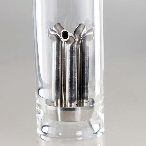 Diese massive Wasserpfeife in Kolbenform oder Zylinderform hergestellt aus hochwertigem Borosilikatglas, verfügt über eine absolute Innovation: einen einsetzbaren Kühldiffusor aus Edelstahl! Vor Nutzung kurz im Eisfach runterkühlen lassen und mithilfe des mitgelieferten Hakens in die Pfeife setzen - anschließend eiskalt genießen.