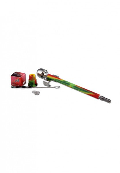 Der 'Wand Vape' von Black Leaf® ist ein vielseitiger, mechanischer Handvaporizer, der auch in Kombination mit einer Bong genutzt werden kann. Dank des beiliegenden Silikonadapters passt er auf Schliffe NS 14 und NS 19.